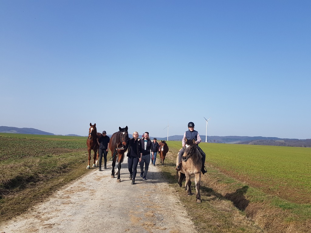 Bei allerbestem Wetter sind wir heute mit einigen Pferden zur Waage gelaufen. Der gemeinsame Spaziergang tat Mensch und Pferd sehr gut.