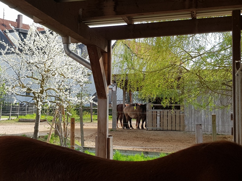 Nach knapp 2Stunden waren wir wieder am Hof angekommen. Die Pferden erhielten ihre verdiente Stärkung und wir Menschen genossen in der Frühlingssonne Kaffee und Kuchen. Lange saßen wir och und plauderten. Ein gelungener Nachmittag.